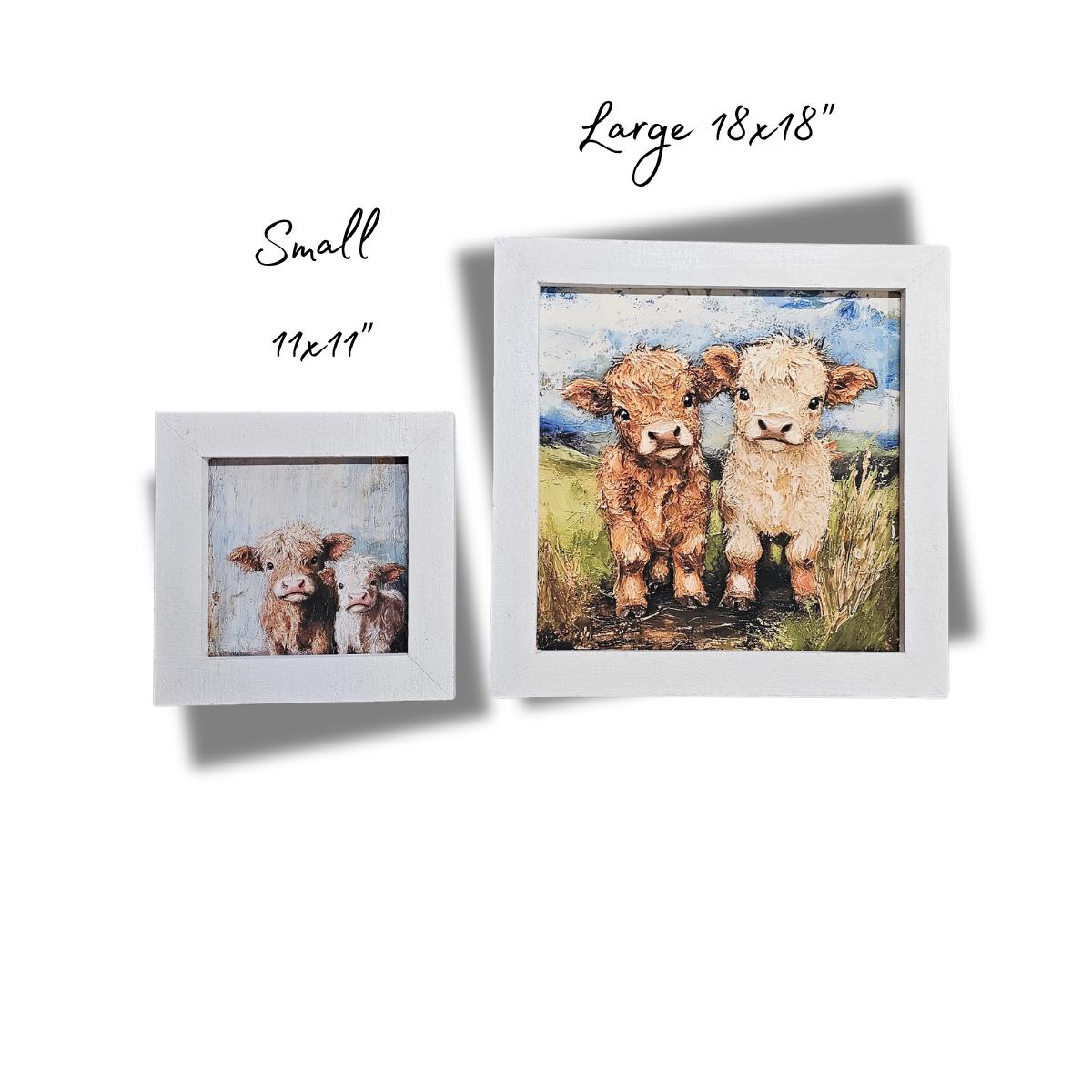 Framed Baby Highland Cow Print, Farmhouse Art, Farm Theme Decor, Animal Print Wall Art, Cow wall art, Highland cow art