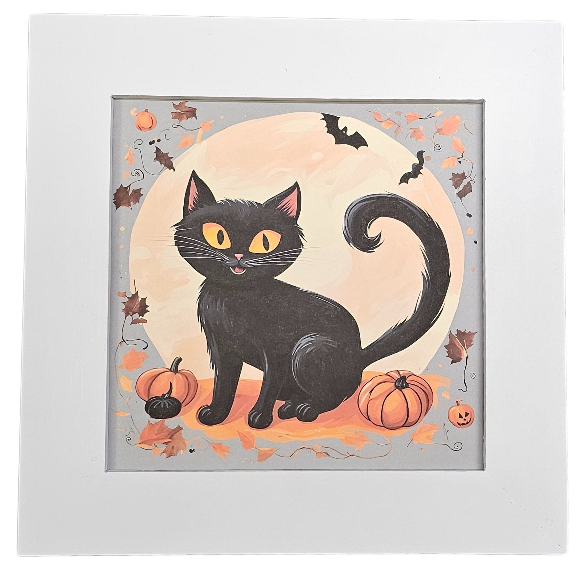 Halloween Cat in the Moon |Framed Print| Wall Art, Spooky Kitten, Cute Halloween Decoration, Cat Lover Gift, Whimsical Cat Wall Décor