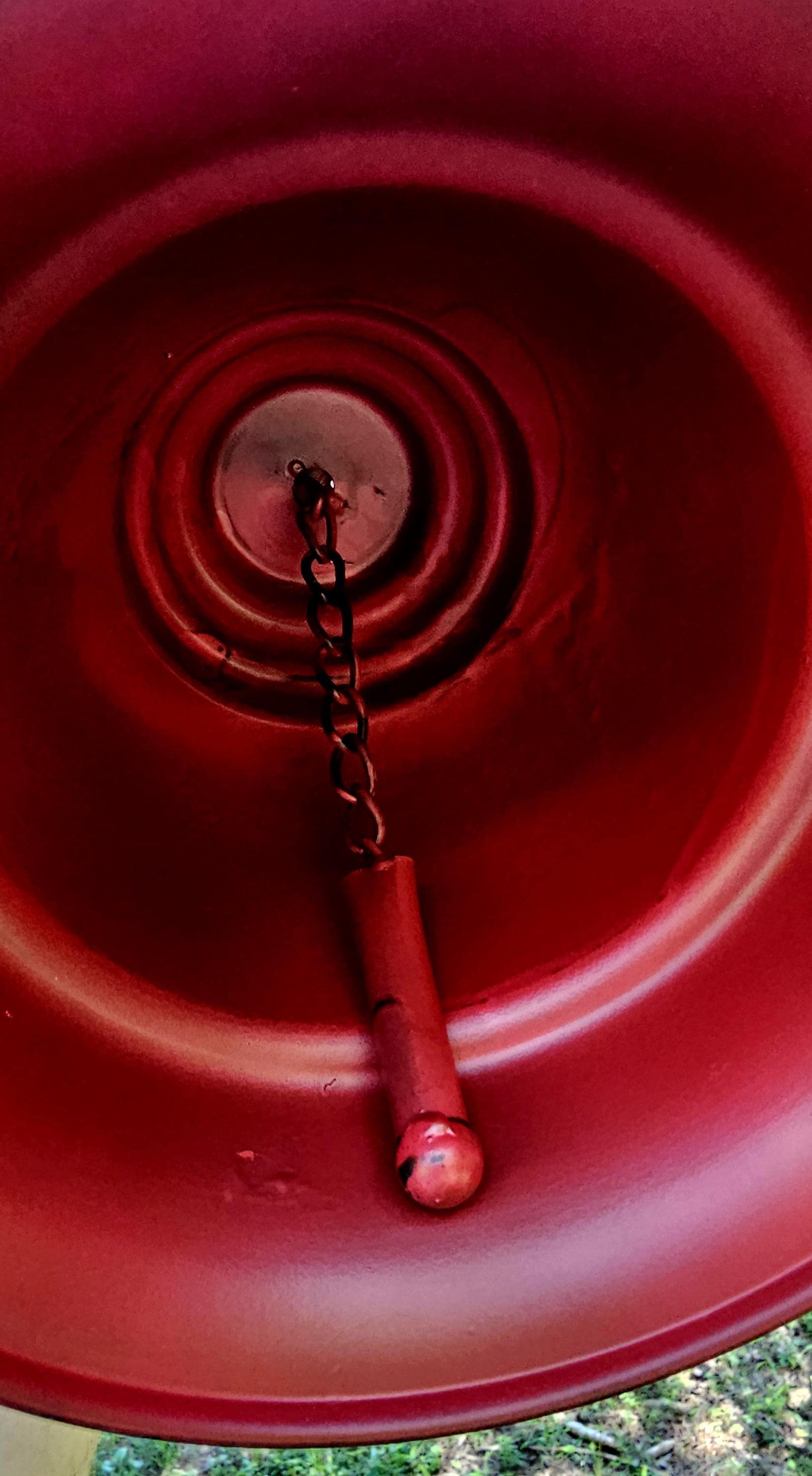 Made from steel, these bells are sold individually. Available in red or white. Each comes with a tied thick jute rope for easy hanging. Personalized name is permanent vinyl. If you prefer painted I can also offer that please message me.